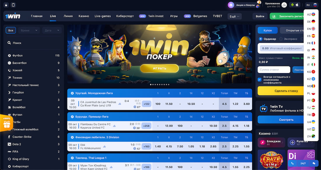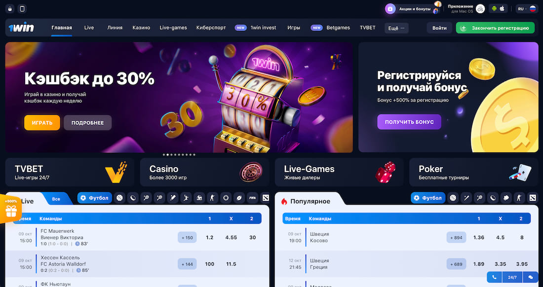 Официальный сайт 1 вин предлагает более тысячи игр, включая слоты (игровые автоматы), рулетку, блэкджек, покер и живые игры с дилерами. Для любителей ставок на спорт платформа открывает доступ к: